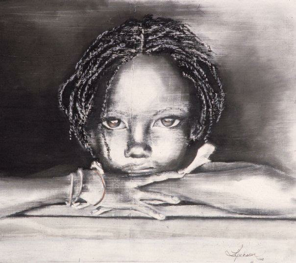 "Momma's Skirt, Son's Refuge" Pencil on wood